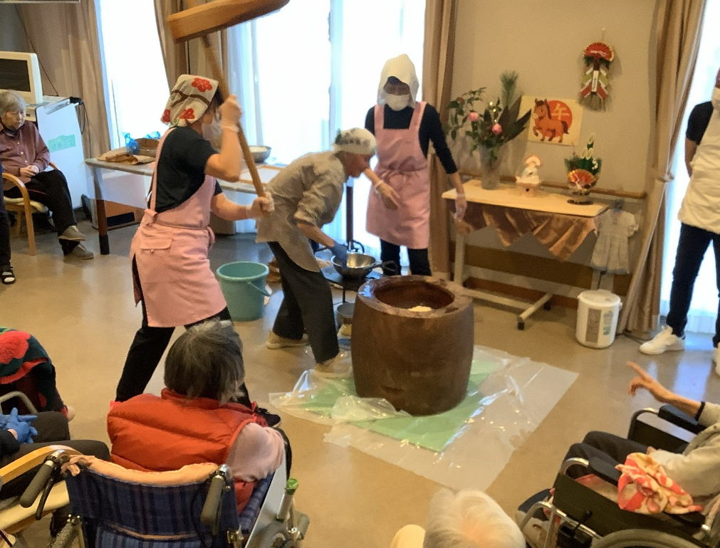 入居者の方にも参加していただき、美味しいお餅が出来ました♪